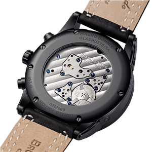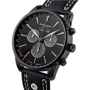 Bruno Söhnle Armbanduhr Atrium Chronograph Limitierte Version Herrenuhren Edelstahl, schwarz Lederband Quarz 10 ATM Ref.-Nr.: 17-73250-711