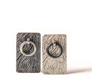 Die Türe zum Schwarzwald entstand durch die Inspiration der alten Holzelemente der Bauernhöfe. Abgegriffene Türrahmen und Geländer lieferten die Idee, die Jahresringe und die Rinde von Holz zu imitieren. Dieses besondere Stück eignet sich wunderbar als Männerschmuck an einer Lederkette getragen. Der bewegliche Türklopfer und die leichten Glanzkanten der Struktur machen diesen Anhänger und seinen Träger zu etwas ganz Besonderen.