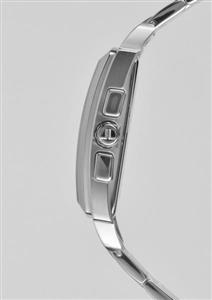 Der Chronograph 1-1906G aus der Serie Bienne von Jacques Lemans ist ein besonderer schöner Blickfang. Das graue Zifferblatt mit Sonnenschliff gefällt mit schmalen Indexes und Details in rosé und einer arabischen 12, das eckige Gehäuse aus massiv Edelstahl in flacher Ausführung mit einer Größe von 30 x 37mm unterstreicht die markant edle Erscheinung dieser Uhr. Neben dem schräg gesetzten Datum zwischen 4 und 5 Uhr hat dieses Modell noch eine 24-Stundenanzeige, einen Minuten-und einen Sekundenzähler. Die Uhr hat ein Quarzwerk, gehärtetes Crystex Glas, einen eckigen Gehäuseboden mit Sprung und eine Wasserdichtigkeit bis 5 ATM. Das Metallband aus massiv Edelstahl mit Faltschließe mit Drücker und Sicherheitsbügel betont den dezent sportlichen Look der Uhr – ein auffälliger und dennoch jederzeit tragbarer Zeitmesser mit eleganter Note.