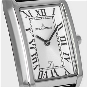 Jacques Lemans Armbanduhr Torino Silber/Schwarz Damenuhren Edelstahl Lederband Quarz 5 ATM Ref.-Nr.: 1-2189.1N