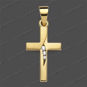 Jung Anhänger Kreuz Ref.-Nr.: 53-0216 333/- Gelbgold 3 Zirkonia synth.