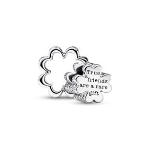 Bringe mit dem Teilbares Vierblättriges Kleeblatt Charm doppeltes Glück in dein Leben. Dieses Charm aus Sterling-Silber in Form eines vierblättrigen Kleeblatts ist mehr als nur ein Blickfang, da sein inneres Kleeblatt von seiner äußeren Hülle getrennt und als separates Charm getragen werden kann, was es zum idealen Geschenk für jemanden macht, der ein wenig zusätzliches Glück braucht. Das innere Kleeblatt trägt die Gravur True friends are a rare gift auf der Rückseite und Lucky to have you an der Seite und hat herzförmige Blätter und grüne künstliche Kristalle in zwei verschiedenen Farbtönen. Dieses Pandora Moments Charm steckt voller Positivität und Symbolik, die für Glaube, Hoffnung, Liebe und Glück steht und wer braucht das nicht.