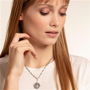 Das Feuer der Liebe: Detailreich von Hand mit mehreren Ebenen und im Cut-out-Design gearbeitet, zeigt dieser runde Charm in seiner Mitte ein Herz mit Flammen, das für echte Leidenschaft steht.