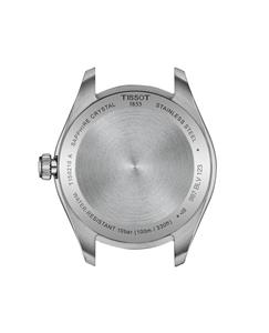 Dieses Tissot PR 100 Quartz 34mm Modell verfügt über ein 34 Millimeter messendes 316L-Edelstahlgehäuse und ein Perlmuttzifferblatt mit Stabindizes und Datumsanzeige. Bei 12, 3, 6 und 9 Uhr bilden je 3 echte Diamanten die Indizes. Das Zifferblatt liegt gut geschützt unter kratzfestem Saphirglas. Ein ebenso massives wie flexibles 316L-Edelstahlarmband erlaubt dank Schnellwechselsystem einen einfachen, werkzeuglosen Austausch. Es besitzt eine Butterfly-Faltschließe mit Drückern.
